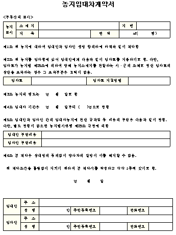 농지임대차계약서.doc 0.03MB 농지임대차계약서.hwp 0.02MB