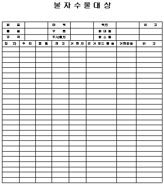 물자 수불 대장 양식 2019-07-15 by sugar 물자 수불 대장.hwp 0.03MB 번 호 단 위 위치 비 고 품 명 구 룹 최 대 량 규 격 주 사용처 최 소 량 일 자 수 입 불 출 재 고 거 래 처 근 거 또는 용 송 거래번호 비 고