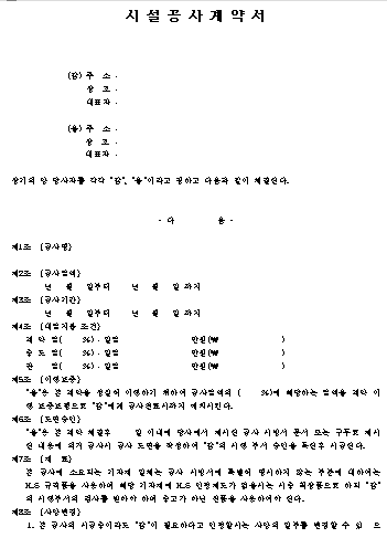 “을”은 본 계약 체결후 일 이내에 당사에서 제시한 공사 시방서 문서 또는 구두로 제시한 내용에 의거 공사시 공사 도면을 작성하여 “갑”의 시행 부서 승인을 득한후 시공한다.