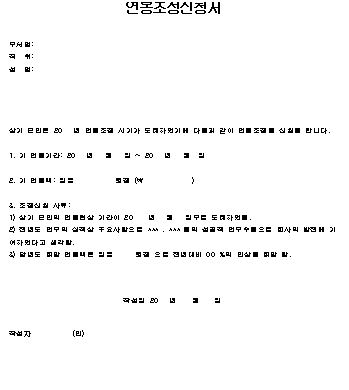 상기 본인은 20 년 연봉조정 시기가 도래하였기에 다음과 같이 연봉조정을 신청을 합니다.