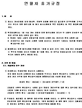 1) 회사는 계속근로로 인한 정신적, 육체적 피로를 회복하고 앞으로의 근무의욕을 고취시키기 위하여 모든 정규사원 및 장기 임시사원에게 유급 연차휴가 및 유급 월차휴가를 준다.