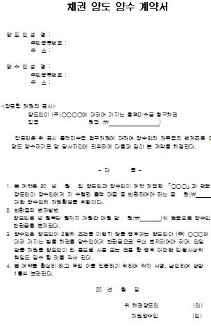 1. 본 계약은 20 년 월 일 양도인과 양수인이 계약 체결한 「○○○」과 관련하여 양도인이 양수인에게 기 수령한 용역 대금 중 반환하여야 하는 금 원에 대한 양수인의 채권확보를 위함이다.