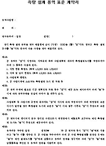 상기 측량 설계 용역을 계약 체결함에 있어 (가칭) OOO을 (를) “갑”이라 칭하고 측량 설계공사를 “을”이라 칭하여 다음 사항을 계약 체결키로 한다.