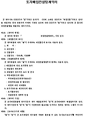 본 계약서는 OOO(이하 “갑”이라고 한다)가 OO에 소재한 OO(이하 “매입건물”이라고 한다)을 매입하는 것과 관련하여 아래에 기재된 조건에 따라 OO(이하 “을”이라고 한다)와 본 물건의 매입컨설팅을 체결하는 계약서이다.