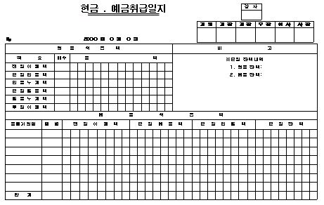 현금, 예금 취급일지 양식