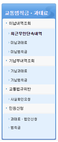 ▶ 최근무인단속내역은 과속 · 신호위반 등의 무인단속 장비 또는 캠코더 장비로 단속된 자료이며 사전통지, 1차 기간내의 미납과태료