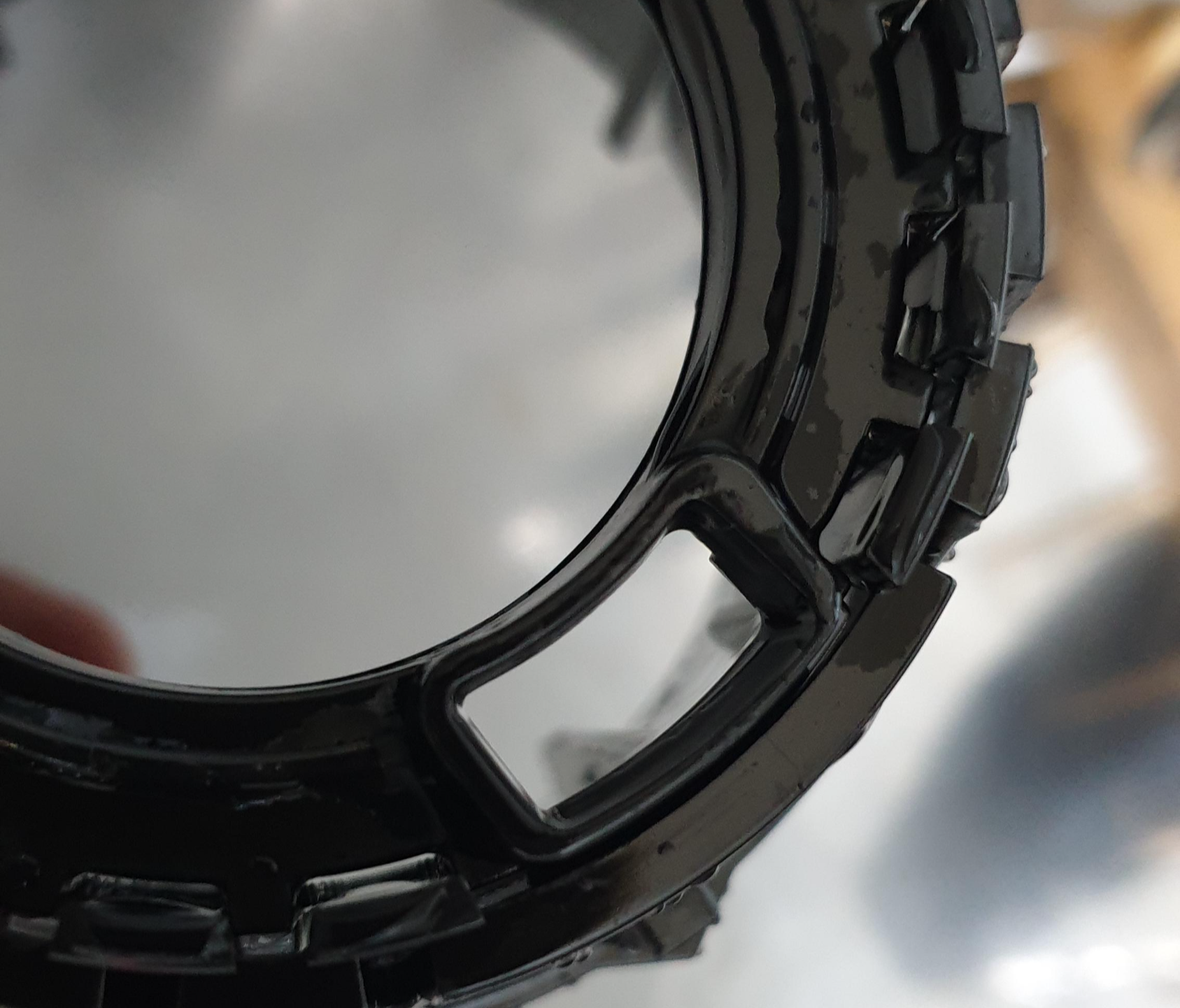 믹서 날개를 감싸는 두 개의 외날개가 있는데 과일 찌꺼기(?)가 빠져나가는 이 사각형 구멍이 일치하도록 잘 맞춰야 합니다. 이리저리 돌리다 보면 톡하고 아귀가 맞는게 느껴집니다.